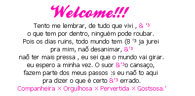 ▬▬ㅤ ㅤ Sem essa de criticar, eu nasci pra humilhar, eu sei que sou o r i g i n a l, então eu deixo tu falar se meu jeito te incomoda. Que pena, eu sólamento tá difícil entender eu nasci com esse t a l e n t o pois a merda já foi feita e tu já nasceu assim, então olha no espelho pra depois falar de mim... Não faço muita questão, de aparecer, simplismente eu sou assim, diferente de você! Se liga r e c a l c a d a, cada uma vai pro seu lado, meu estilo é diferente, normalmente copiado!